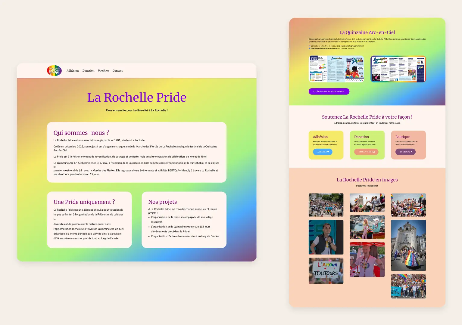 Refonte et développement WordPress pour La Rochelle Pride : design, SEO et conformité RGPD.